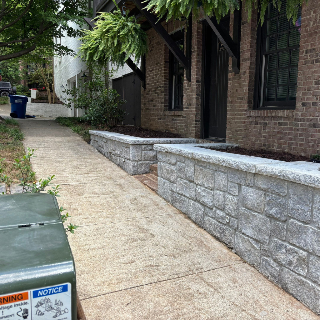 Natural stone retaining walls look incredible on wooded and sloped lots. We build stone walls and boulder walls from 2 feet to 12 feet tall, especially in Vinings and Smyrna where the terrain calls for it. Every wall includes drainage and base prep — the two things that keep a retaining wall standing for decades instead of leaning after one rainy season.